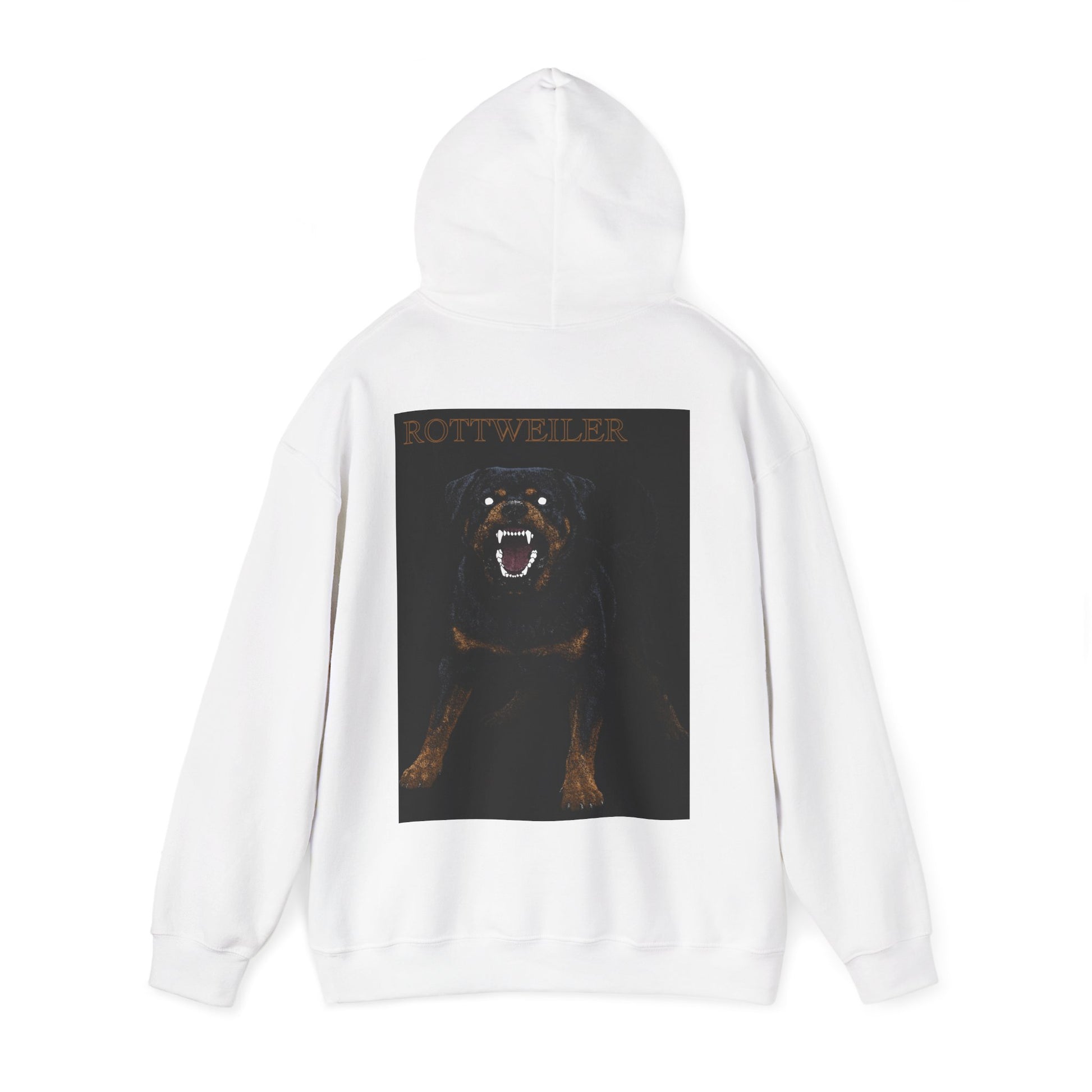 This cozy hooded sweatshirt carries a bold, cinematic energy—soft, warm, and built for moments when you want presence without shouting. The front bears our subtle logo, while the back reveals a dramatic, high-contrast Rottweiler portrait that feels visceral and raw. Wear it on evening walks, to late-night gigs, or around town when you want something that reads both protective and expressive. The medium-heavy fleece holds shape and print detail beautifully; the kangaroo pouch and double-lined hood make it a comfortable layer you’ll reach for when the air turns cool. Thoughtfully made with durable fibers and careful printing, it settles into your rotation as a statement piece that still lives like a favorite sweatshirt.