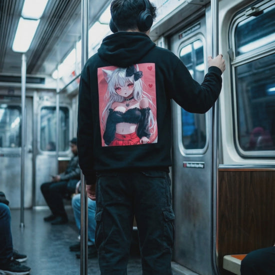 Anime Cat Girl Hoodie — Red Heart Kawaii Aesthetic Sweatshirt